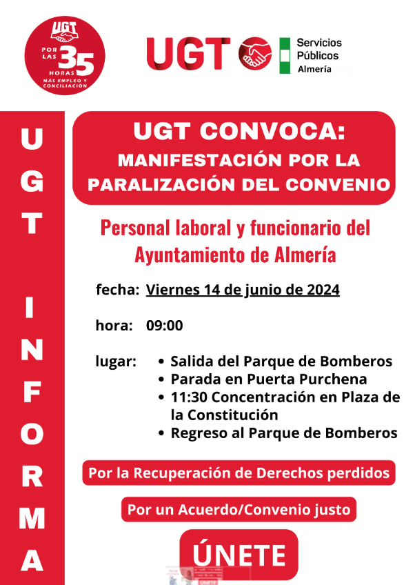 La UGT y los bomberos del Parque de Almería invitan a todos los ciudadanos a unirse a esta manifestación para exigir una respuesta adecuada a las reivindicaciones presentadas y poner fin a la parálisis de la negociación.
