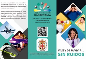 La Asociación de Vecinos Bastetania, de Almería, sigue con su campaña de educación y sensibilización ciudadana contra el ruido en centros educativos de la Capital. Bajo el título “Vive y… Lee más: La Asociación de vecinos Bastetania relanza su campaña contra el ruido - PODEMOS-IU-VERDES CENTRA SUS MOCIONES PARA EL PRÓXIMO PLENO DEL AYUNTAMIENTO DE ALMERÍA EN LA DEFENSA DEL PATRIMONIO HISTÓRICO